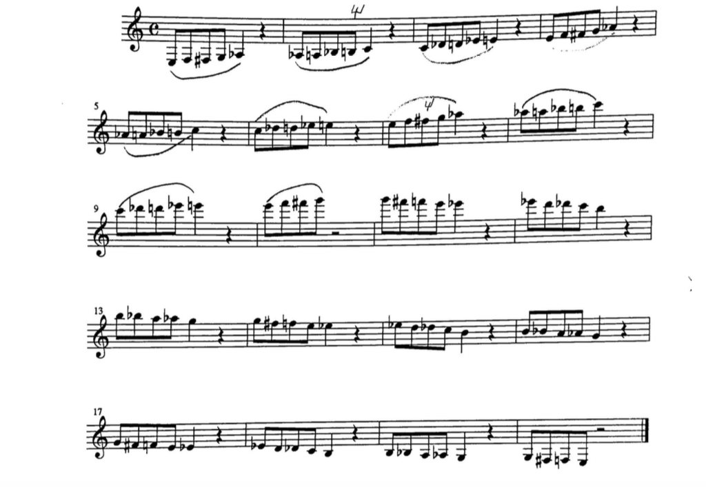 The first three exercises are helpful for everyone but are appropriate for beginning to intermediate players. Make sure you’re using chromatic fingerings for these exercises to help reinforce your chromatic scale. The idea is to use your metronome and start at QN=60 as your tempo. You can gradually increase the speed after you feel like you’ve mastered each exercise.