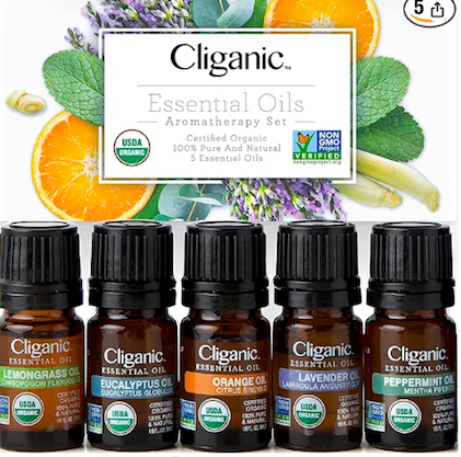 Cliganic Organic Essential Oils Set (Top 5) – Peppermint, Lavender, Eucalyptus, Lemongrass & Orange: $9.99