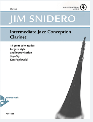 From Sheet Music Plus, 15 Great Solo Etudes for Jazz Style and Improvisation Composed by Jim Snidero, “This book/audio set includes 15 etudes based on standards, modal tunes and blues, demonstrated by Ken Peplowski on clarinet with the incredibly swinging rhythm section of Dave Hazeltine on piano, Peter Washington on Bass and Kenny Washington on Drums.”